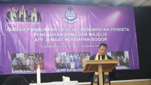 Bogor, Interpolpost.com – Badan Pekerja Sinode Angowuloa Fa’awosa kho Yesu (BPS-AFY) resmi mengukuhkan Gereja AFY Jemaat Persiapan Bogor dalam sebuah ibadah syukur yang berlangsung di Gereja Rumah Doa, Kondang Roda, Ngangewer, Cibinong – Bogor, Minggu (21/9).