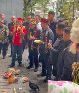 Usai persidangan, suasana di halaman pengadilan diwarnai dengan penampilan kesenian adat Dayak Kanayatn yang dibawakan oleh pihak keluarga dan pendukung. Prosesi dimulai dengan pembakaran dupa serta penyebaran beras kuning sebagai bagian dari ritual adat.